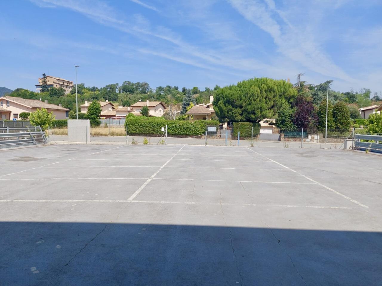 - Aparcamiento trasero: a nivel de planta primera, con una amplia zona de estacionamiento adicional, ideal para flotas o vehículos de gran tonelaje. Esta área se sitúa a una cota superior, adaptada al relieve del terreno, mejorando la accesibilidad y operatividad.