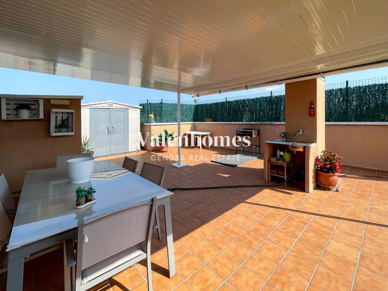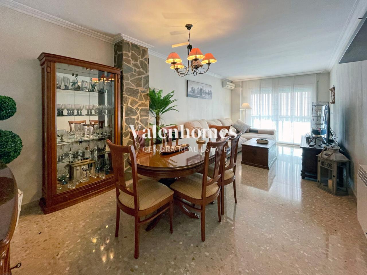 Este espectacular piso de 136 m² construidos, esta situado en una zona tranquila y céntrica de Montornés, combina amplitud, confort y un espacio exterior realmente excepcional.