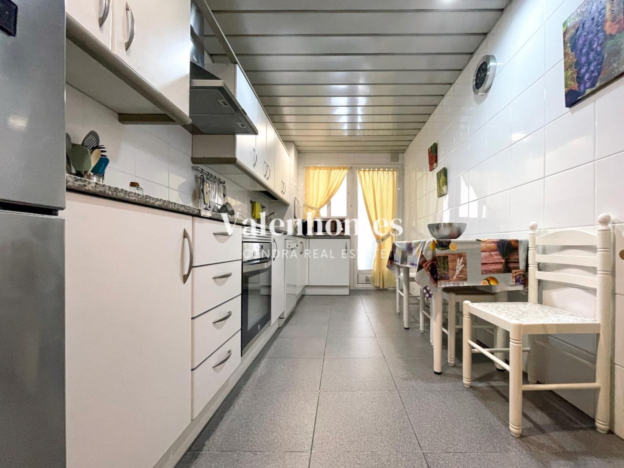 La cocina es amplia y totalmente equipada, con espacio para una mesa con dos sillas, y una zona de lavandería independiente, ideal para mantener el orden y la organización. El salón-comedor, luminoso y acogedor, tiene salida directa a un balcón perfecto para relajarse.