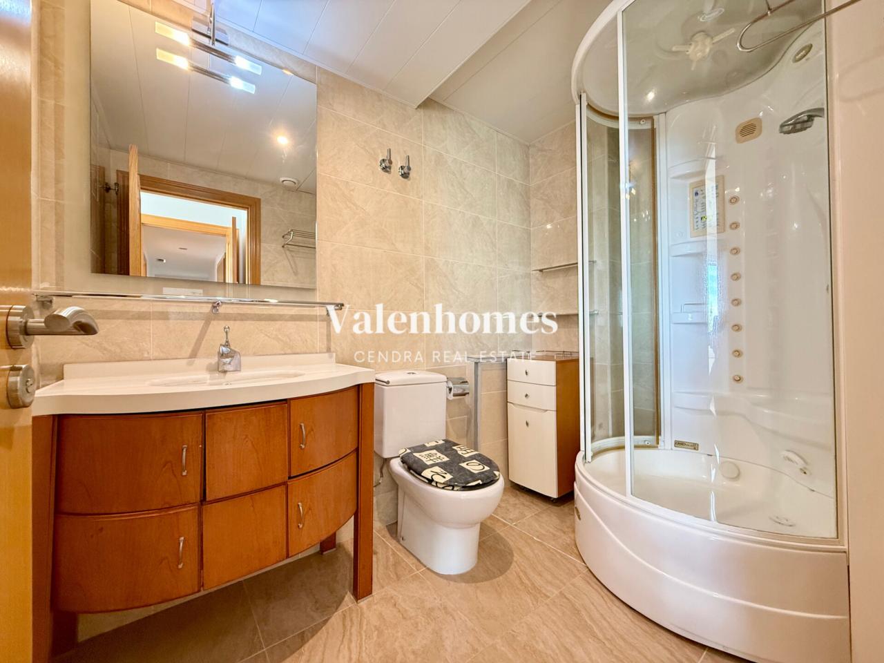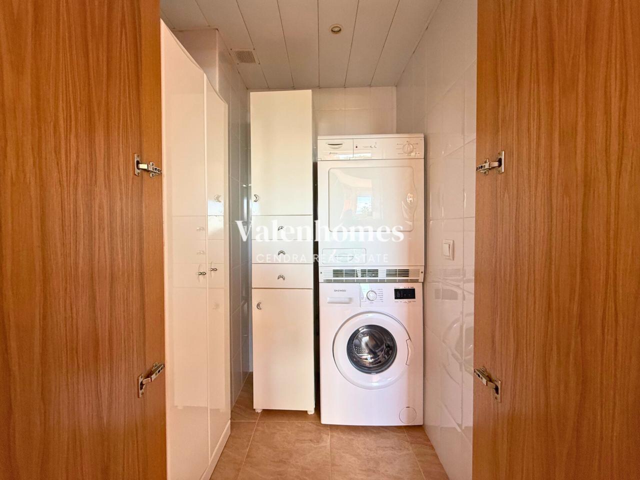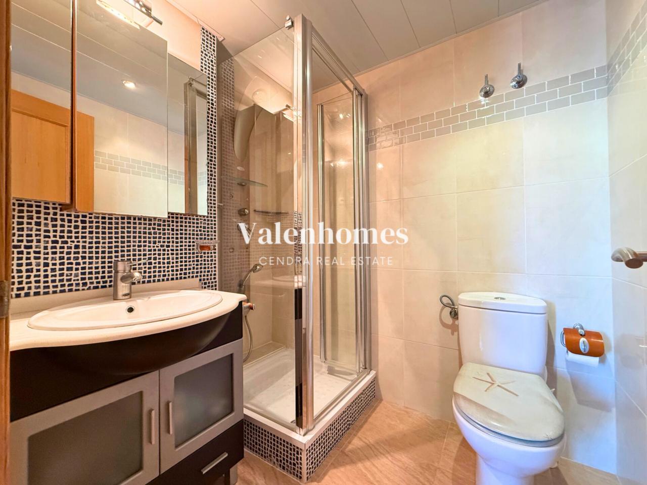 Actualmente dispone de dos amplias habitaciones dobles, una de ellas en suite principal con baño con ducha de hidromasaje, salida a una terraza privada y posibilidad de reconvertir en tres dormitorios, como en su diseño original. Además, la vivienda cuenta con un segundo baño completo, también con ducha de hidromasaje, y una zona de lavadero y almacenaje, práctica y bien organizada.