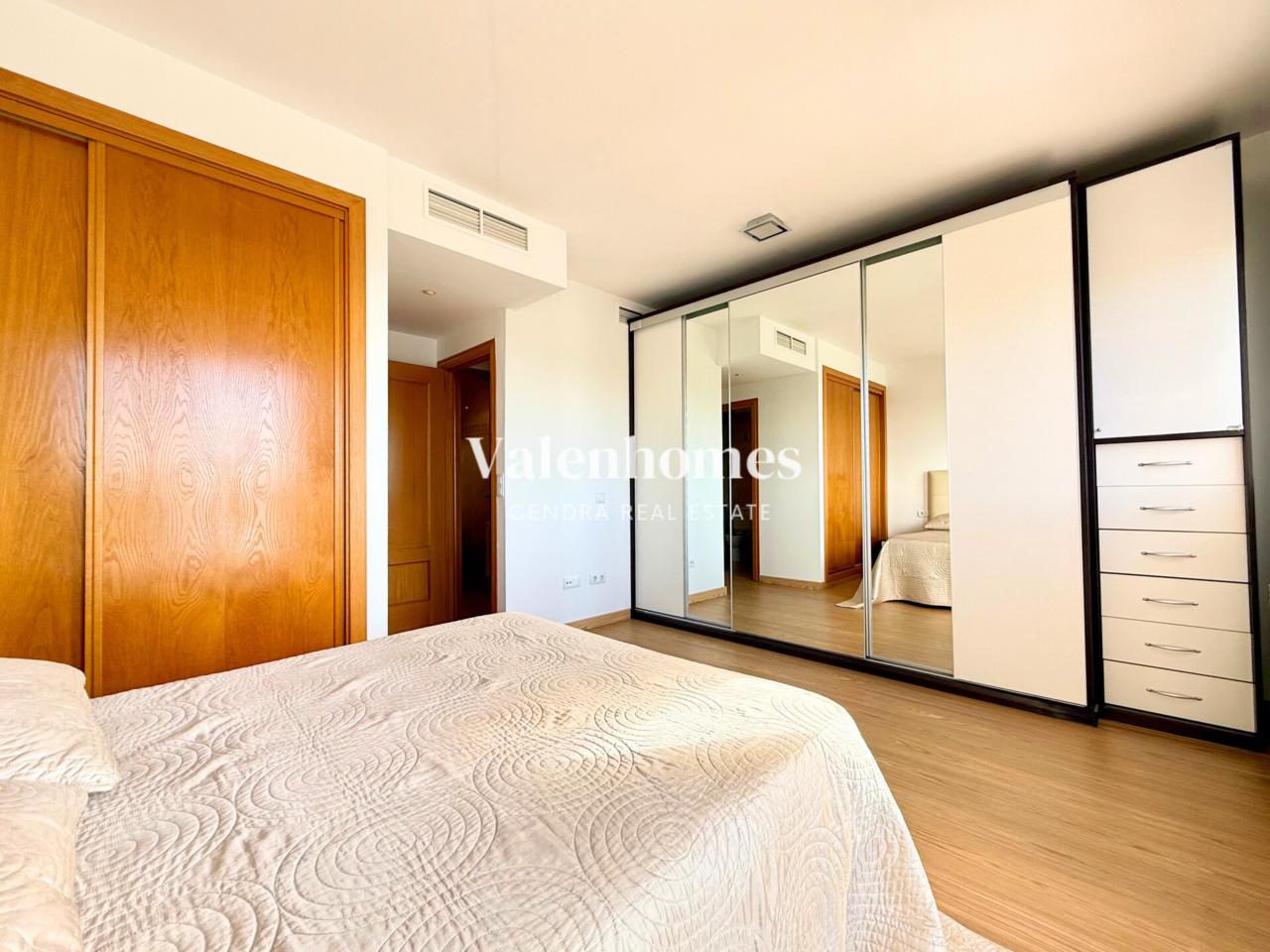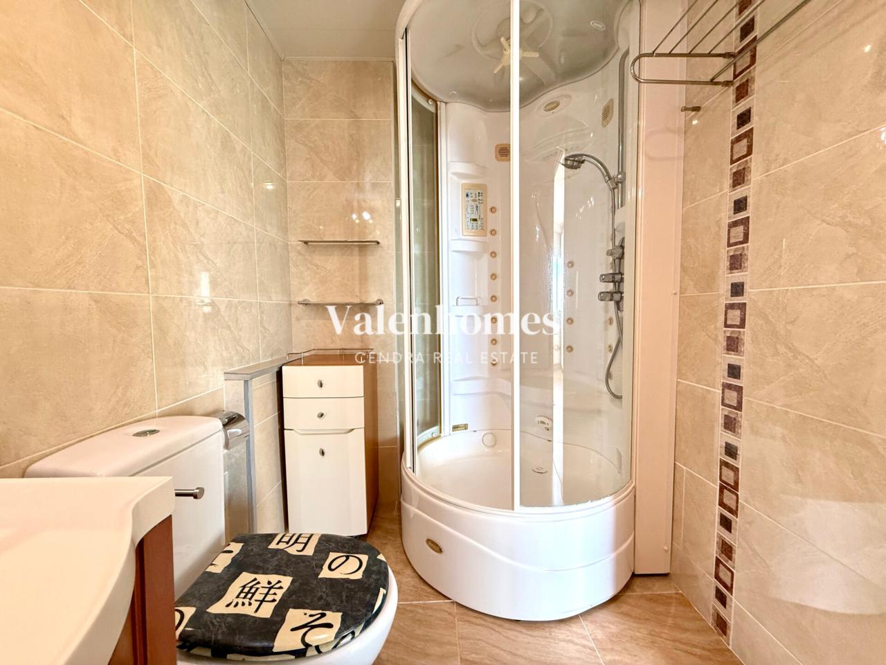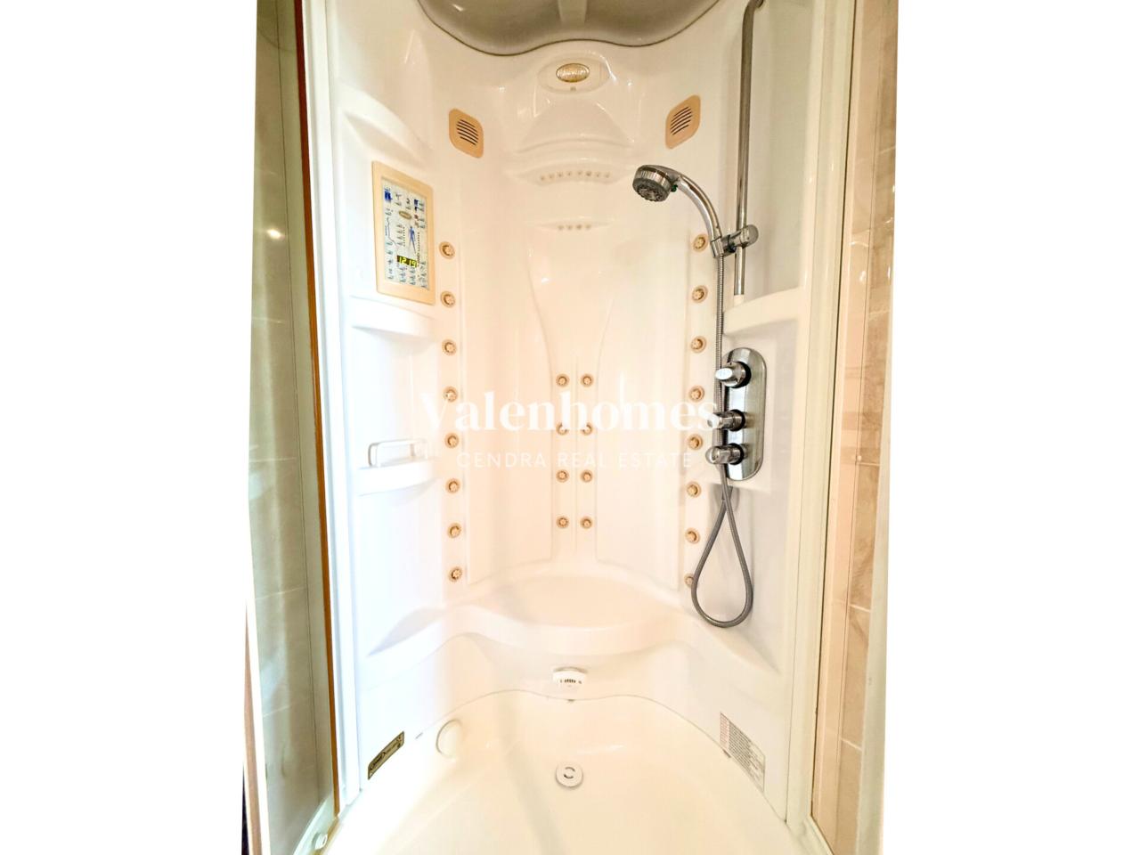 Actualmente dispone de dos amplias habitaciones dobles, una de ellas en suite principal con baño con ducha de hidromasaje, salida a una terraza privada y posibilidad de reconvertir en tres dormitorios, como en su diseño original. Además, la vivienda cuenta con un segundo baño completo, también con ducha de hidromasaje, y una zona de lavadero y almacenaje, práctica y bien organizada.