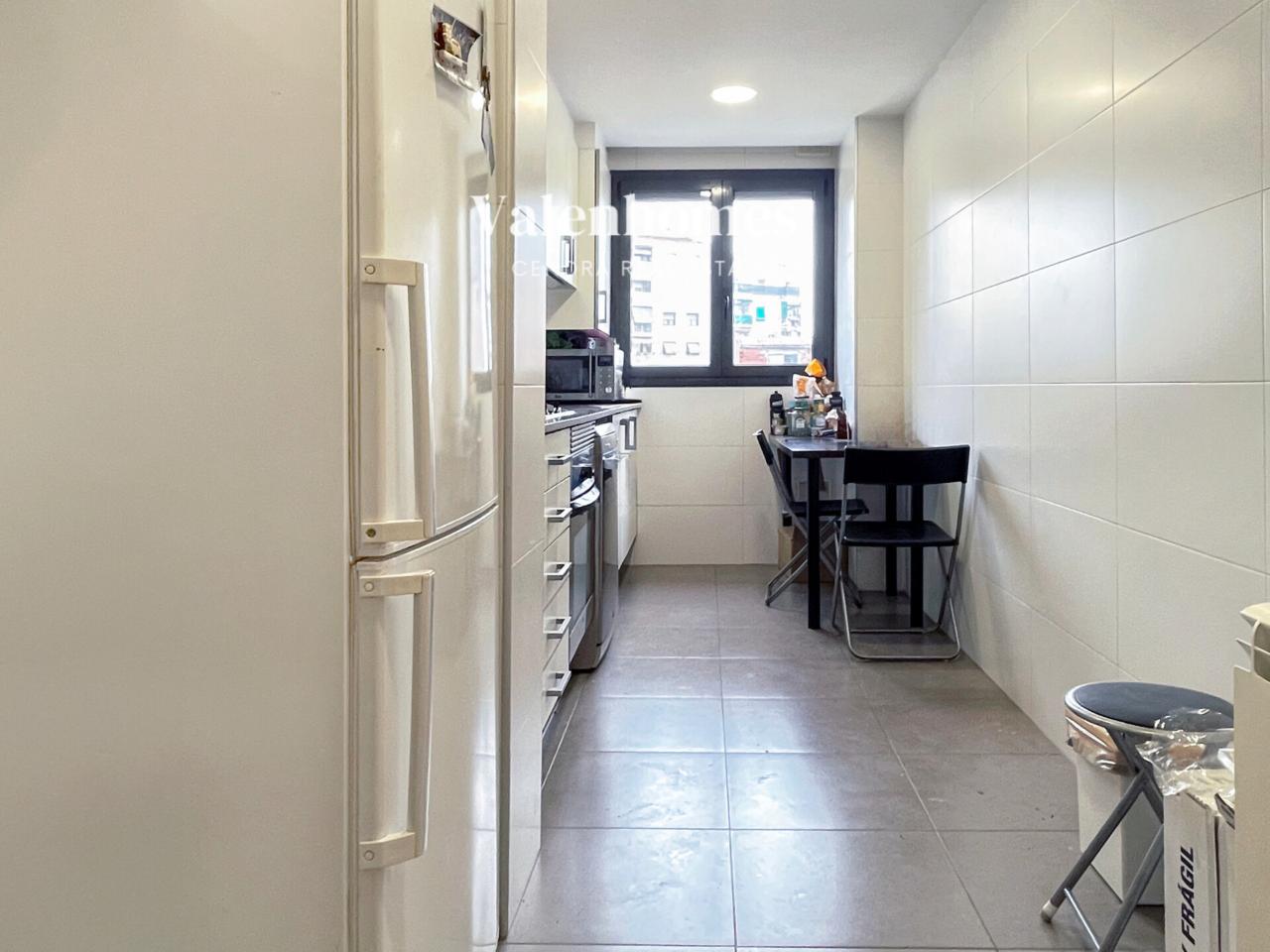Al entrar, un agradable recibidor da acceso a un baño con plato de ducha, una cocina amplia perfecta para amantes de la cocina y un salón-comedor luminoso con salida a un balcón generoso. En esta planta también encontramos una habitación de tamaño mediano, ideal como dormitorio, despacho o habitación de invitados.