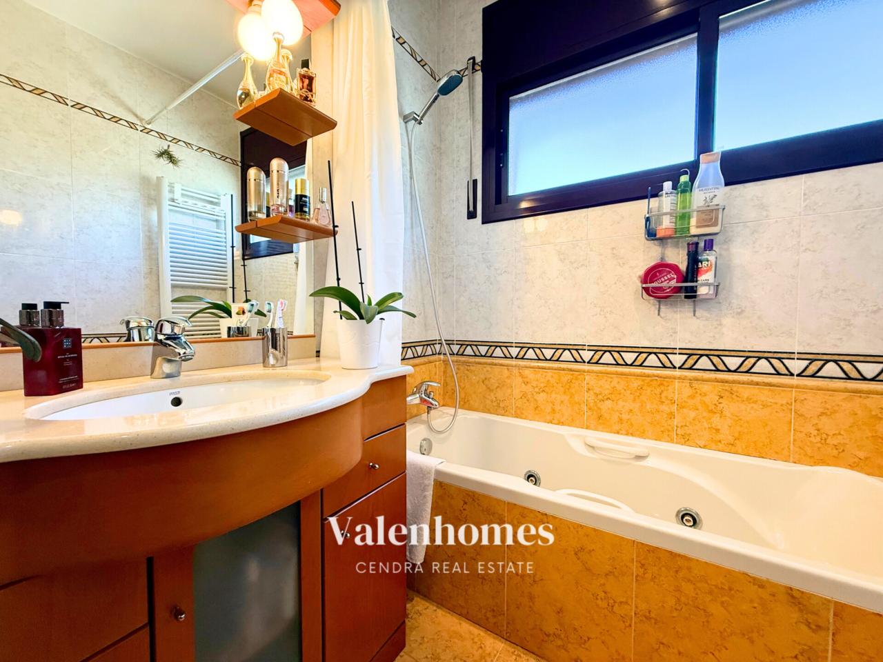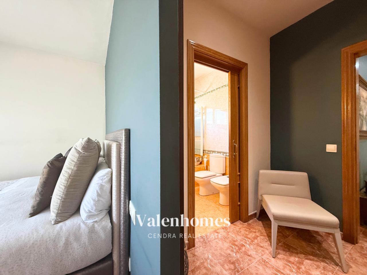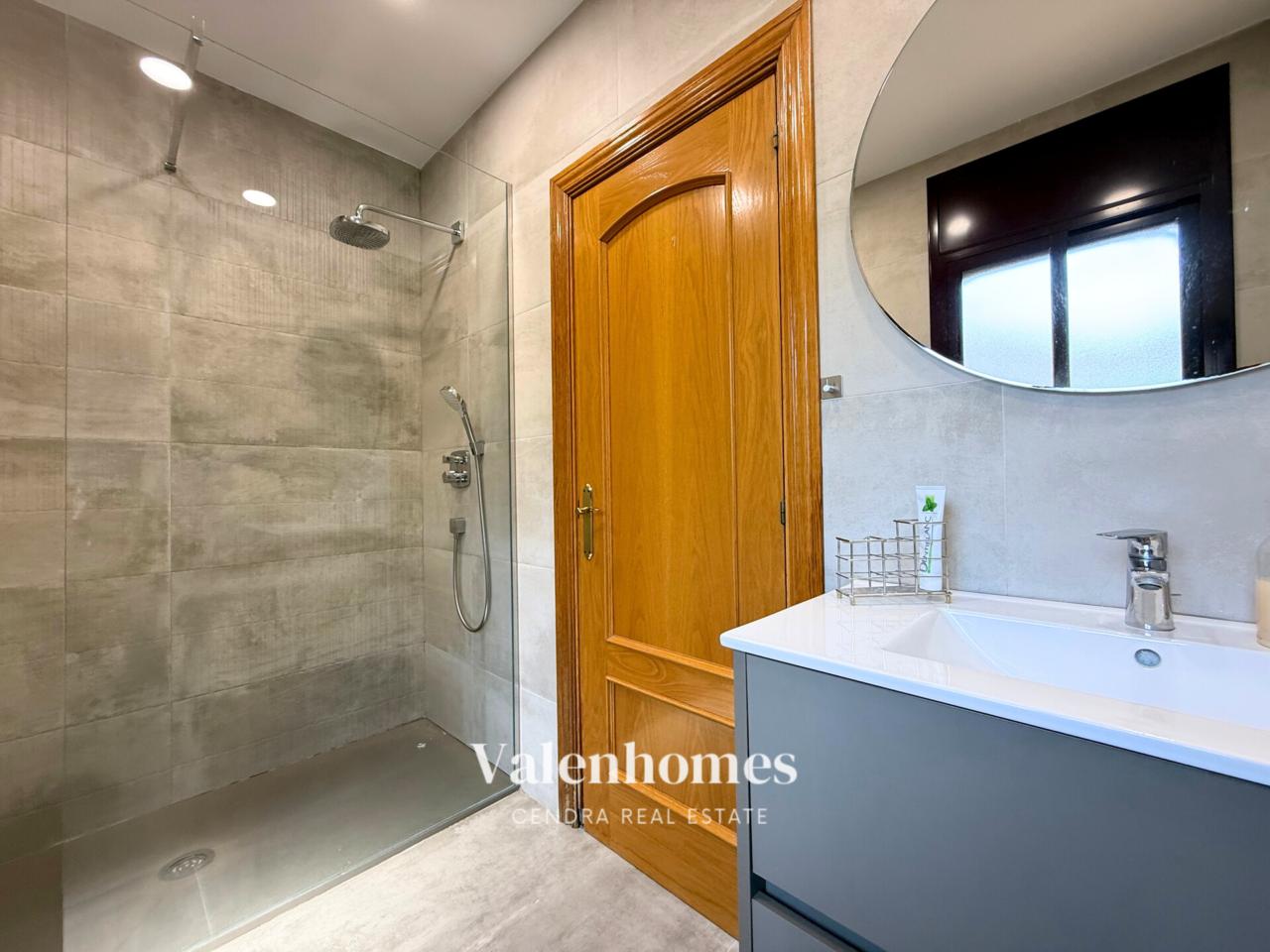 La planta superior alberga la zona de noche, compuesta por 4 dormitorios de generosas dimensiones y armarios empotrados. Destaca la suite principal, que dispone de un gran armario y acceso directo a una amplia terraza privada con vistas espectaculares. Además, una segunda habitación también cuenta con salida directa a esta terraza, potenciando la sensación de amplitud, luz y conexión con el exterior. Completa esta planta un baño con ducha, aportando practicidad y comodidad.